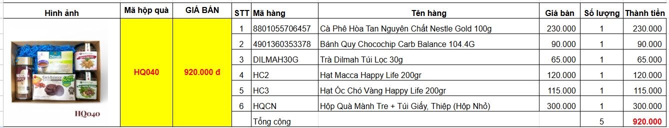 | 6 | Hộp Quà Mành Tre + Túi Giấy, Thiệp (Hộp Nhỏ) | HQCN |