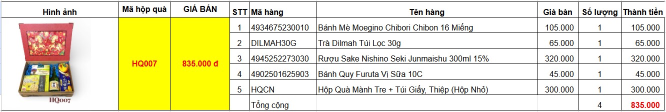 | 5 | Hộp Quà Mành Tre + Túi Giấy, Thiệp (Hộp Nhỏ) | HQCN |