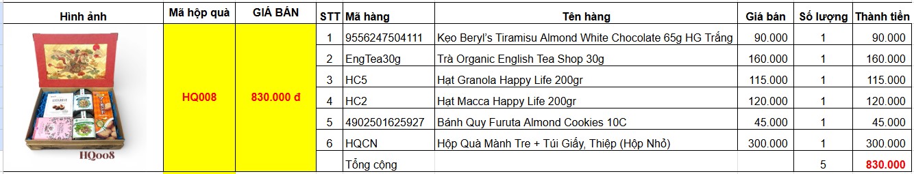 | 6 | Hộp Quà Mành Tre + Túi Giấy, Thiệp (Hộp Nhỏ) | HQCN |