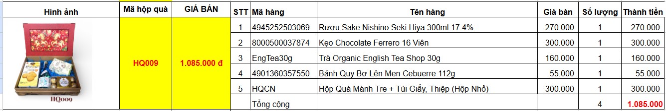 | 5 | Hộp Quà Mành Tre + Túi Giấy, Thiệp (Hộp Nhỏ) | HQCN |