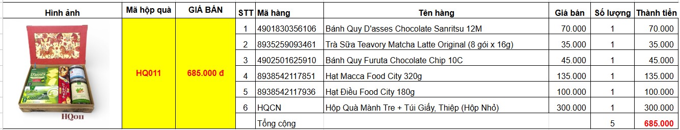 | 6 | Hộp Quà Mành Tre + Túi Giấy, Thiệp (Hộp Nhỏ) | HQCN |
