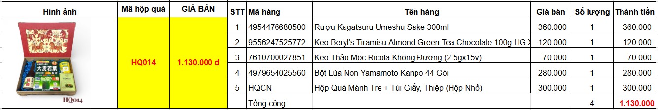 | 5 | Hộp Quà Mành Tre + Túi Giấy, Thiệp (Hộp Nhỏ) | HQCN |