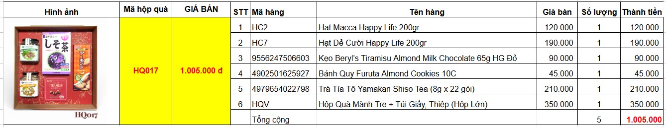 | 1 | Hạt Macca Happy Life 200gr | HC2 |
