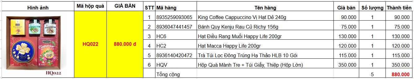 | 6 | Hộp Quà Mành Tre + Túi Giấy, Thiệp (Hộp Lớn) | HQV |