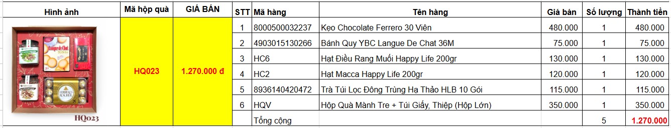 | 6 | Hộp Quà Mành Tre + Túi Giấy, Thiệp (Hộp Lớn) | HQV |