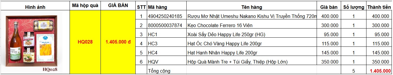 Bảng giá chi tiết hộp quà tết HQ028