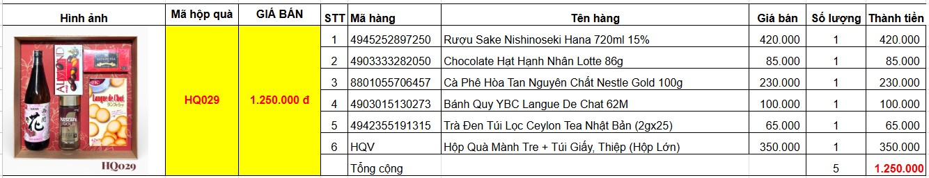 Bảng giá chi tiết hộp quà tết HQ029