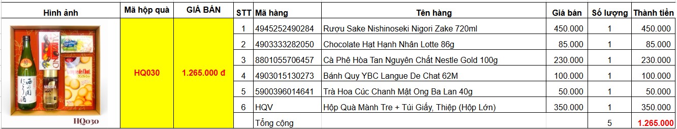 | 6 | Hộp Quà Mành Tre + Túi Giấy, Thiệp (Hộp Lớn) | HQV |