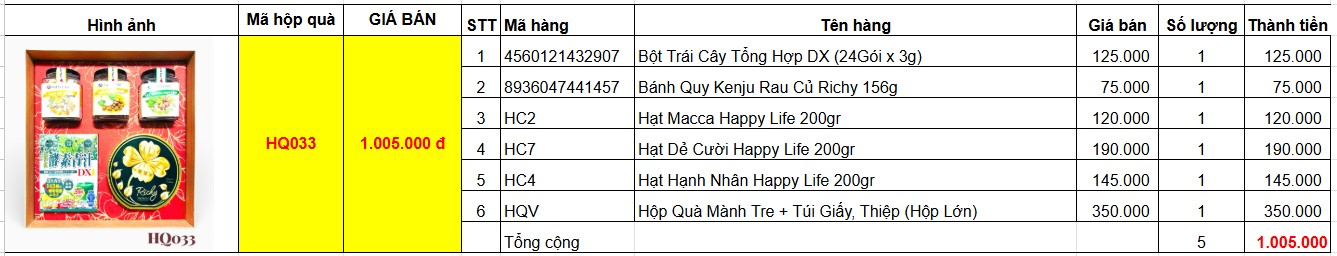 | 6 | Hộp Quà Mành Tre + Túi Giấy, Thiệp (Hộp Lớn) | HQV |