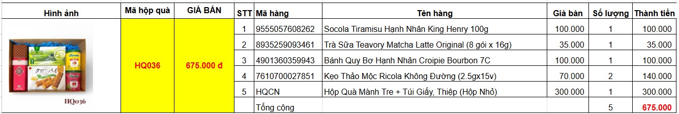 | 5 | Hộp Quà Mành Tre + Túi Giấy, Thiệp (Hộp Nhỏ) | HQCN |