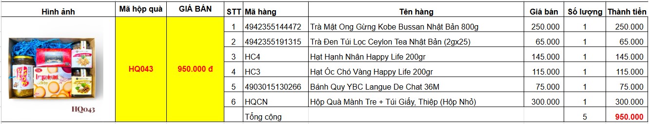 | 1 | Trà Mật Ong Gừng Kobe Bussan Nhật Bản 800g | 4942355144472 |