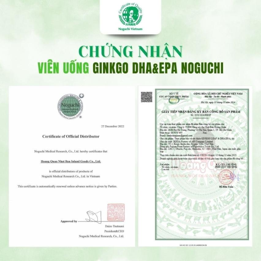 Chứng nhận viên uống bổ não Ginkgo Leaf & DHA EPA Noguchi