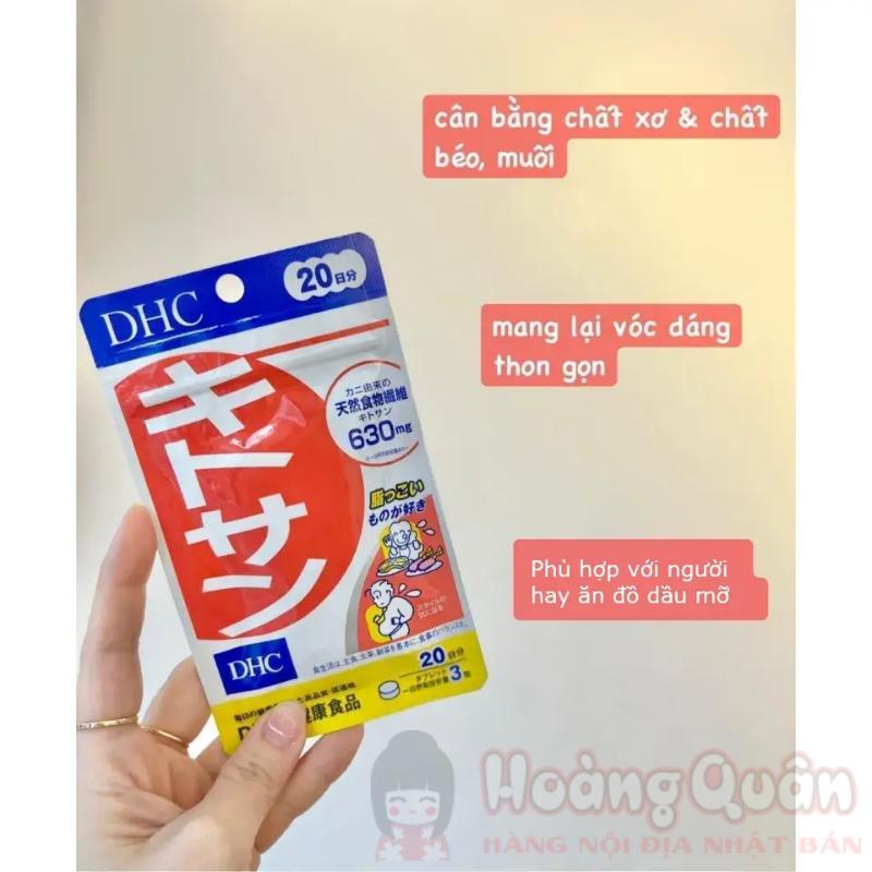 - Viên uống DHC Chitosan kết hợp Chitosan với bột nhân sâm và gạo mầm, giúp chăm sóc sức khỏe toàn diện và duy trì cơ thể săn chắc, thon gọn.
