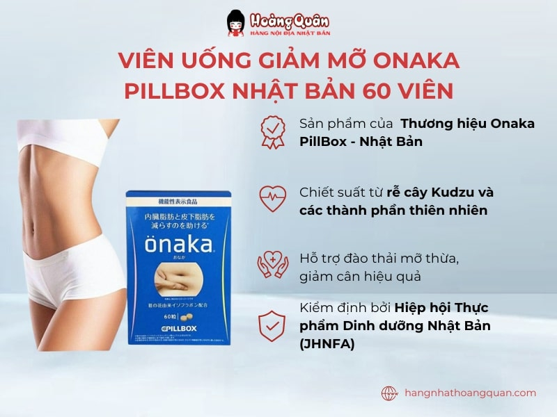 Bạn đang tìm kiếm một giải pháp giảm mỡ bụng an toàn, hiệu quả mà không mệt mỏi hay mất ngủ? Viên uống giảm mỡ bụng Onaka Pillbox Nhật Bản 60 viên chính là lựa chọn hàng đầu dành cho bạn. Được chiết xuất từ thảo dược thiên nhiên giàu isoflavone, Onaka giúp đốt cháy mỡ bụng, thon gọn vòng eo, đồng thời hỗ trợ cân bằng nội tiết, làm đẹp da và chống lão hóa. Cùng khám phá sản phẩm giảm cân bán chạy hàng đầu tại Nhật ngay hôm nay!
